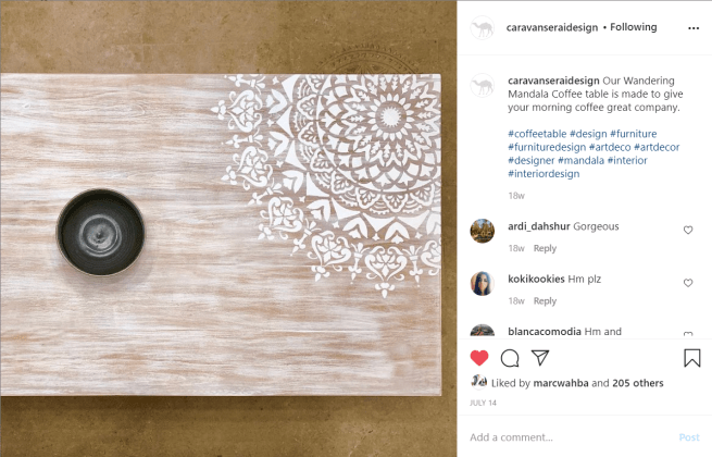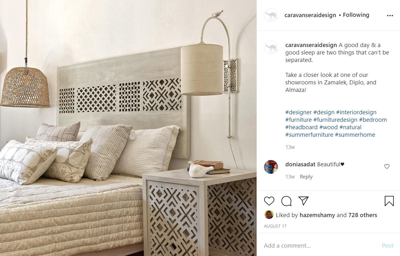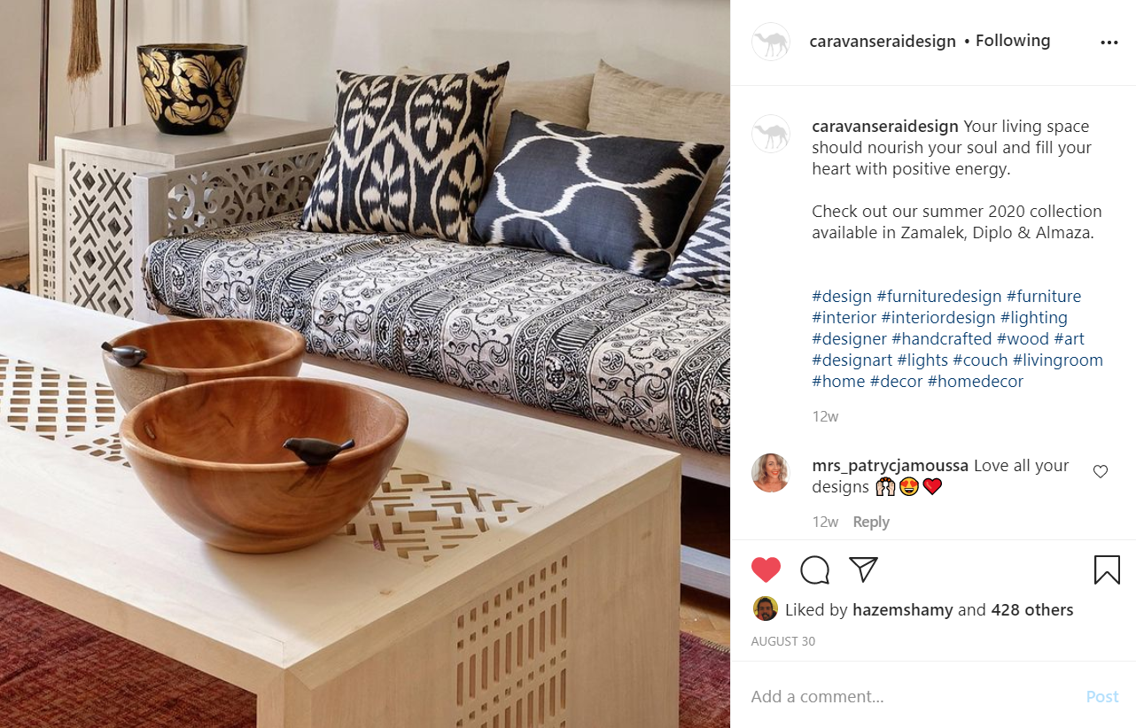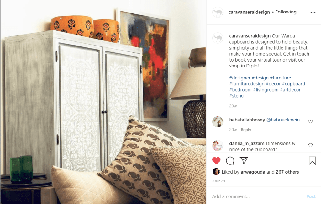 Developing captions for instagram posts for a designer furniture store; Caravn Serai